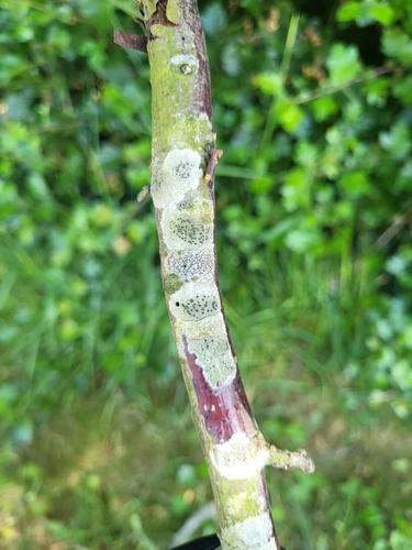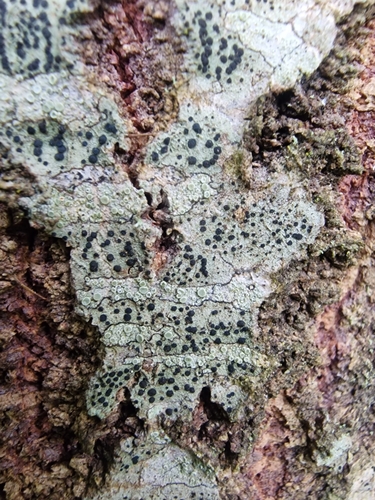 Der Olivgrüne Schwarznapfflechte (Lecidella elaeochroma) ist ein Pilz mit dem Speisewert ungenießbar. Die Hauptsaison erstreckt sich von Januar bis Dezember. Er wächst bevorzugt auf Holz.