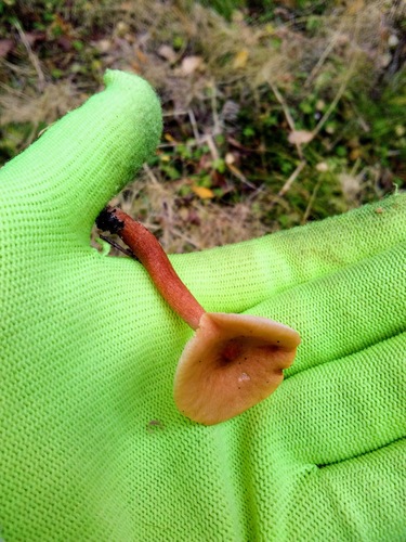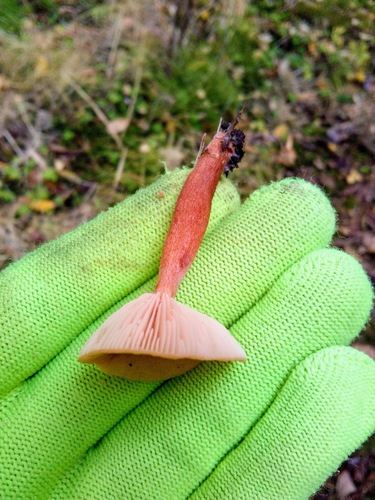Der Stiel ist orange-braun-gelb. Besondere Merkmale: brüchig, Wurzelbasis, hohl.