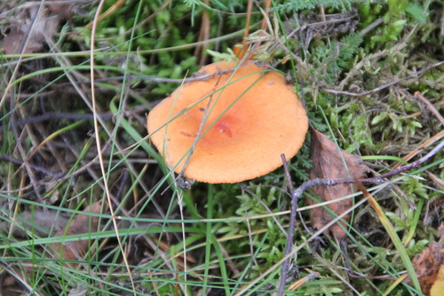 Der 2–8 cm breite Hut ist braun-orange-rot gefärbt. Die Form ist meist trichterförmig, schirmförmig, kegelförmig. Er ist hygrophan (Die Hutfarbe ändert sich bei Feuchtigkeit).