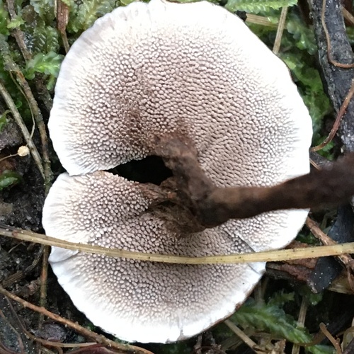 Die Unterseite zeigt Farben von schwarz/grau. Sie sind angewachsen, herablaufend.