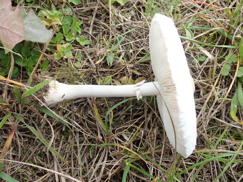 Der Stiel ist weiß-gelb-braun. Besondere Merkmale: knollige Basis, flocken, Ring, hohl, genattert.