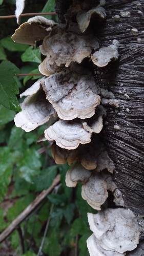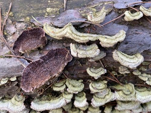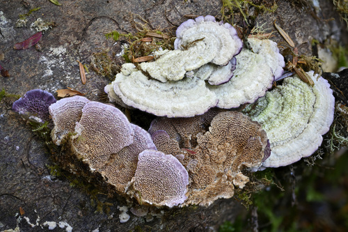 Der Zahnförmiger Violettporling (Trichaptum fuscoviolaceum) ist ein Pilz mit dem Speisewert ungenießbar. Die Hauptsaison erstreckt sich von Januar bis Dezember. Er wächst bevorzugt auf Holz.