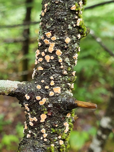 Der Orangefarbene Mehlscheibe (Aleurodiscus amorphus) ist ein Pilz mit dem Speisewert ungenießbar. Die Hauptsaison erstreckt sich von Juni bis Dezember. Er wächst bevorzugt auf Holz.