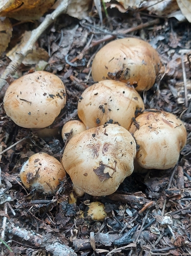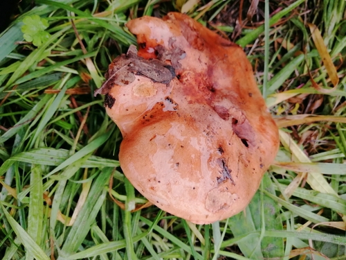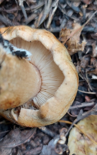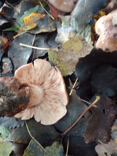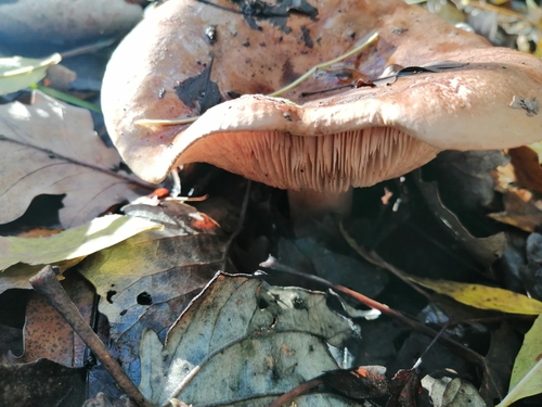 Die Unterseite zeigt Farben von weiß/braun/rot/orange. Sie sind frei, angewachsen.