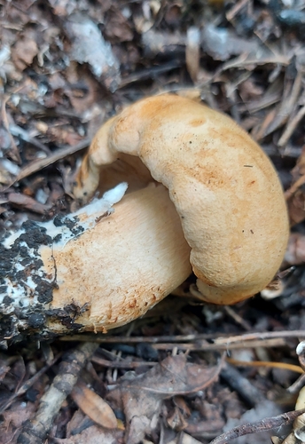 Der Stiel ist weiß-braun. Besondere Merkmale: faserig, Wurzelbasis, genattert.