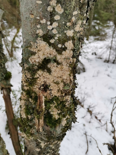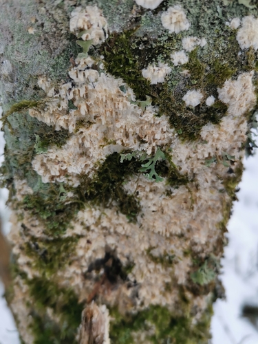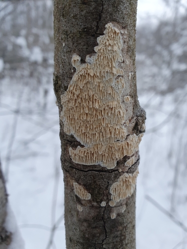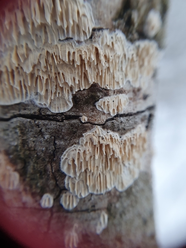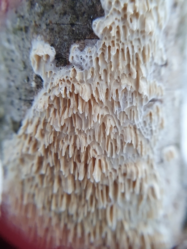 Der Reibeisen-Rindenpilz (Basidioradulum radula) ist ein Pilz mit dem Speisewert ungenießbar. Die Hauptsaison erstreckt sich von Januar bis Dezember. Er wächst bevorzugt auf Holz.
