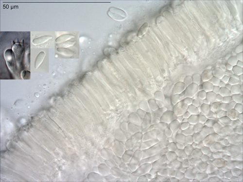 Die Unterseite zeigt Farben von weiß. Sie sind angewachsen, herablaufend.