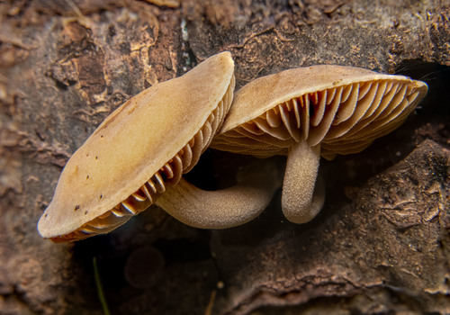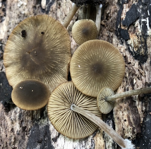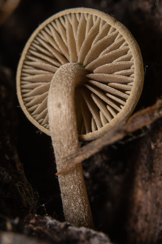 Die Unterseite zeigt Farben von braun/grün/orange/grau/gelb. Sie sind angewachsen, herablaufend.