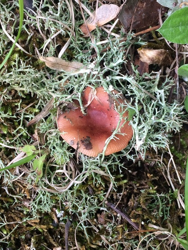 Der 2–7 cm breite Hut ist braun-orange-rot gefärbt. Die Form ist meist trichterförmig, andere, schirmförmig, geriefter Hut. Er ist hygrophan (Die Hutfarbe ändert sich bei Feuchtigkeit).