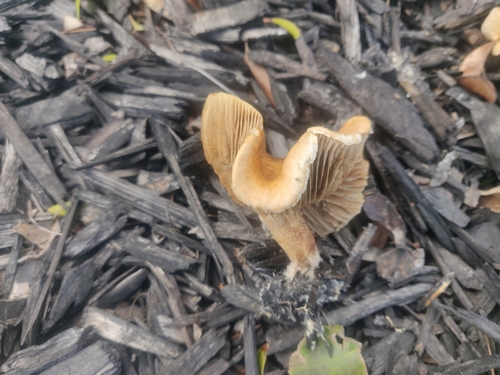 Der 2–10 cm breite Hut ist gelb-braun-orange gefärbt. Die Form ist meist andere, kegelförmig, geriefter Hut. Er ist hygrophan (Die Hutfarbe ändert sich bei Feuchtigkeit).