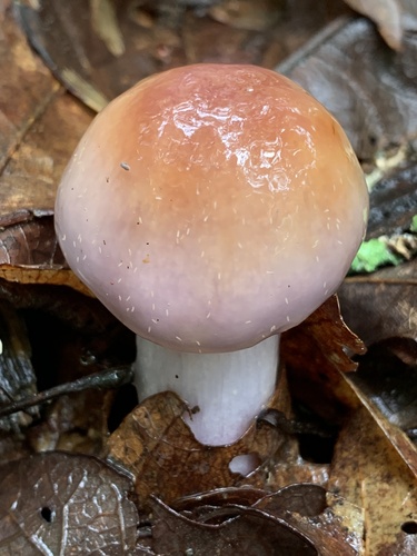 Der 2–12 cm breite Hut ist braun-orange-rot-weiß gefärbt. Die Form ist meist andere. Er ist hygrophan (Die Hutfarbe ändert sich bei Feuchtigkeit).