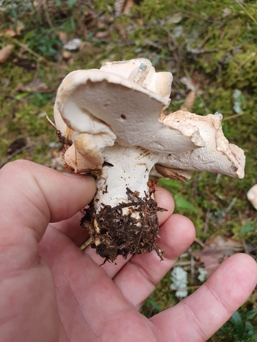 Der Stiel ist gelb-weiß. Besondere Merkmale: brüchig, Wurzelbasis.