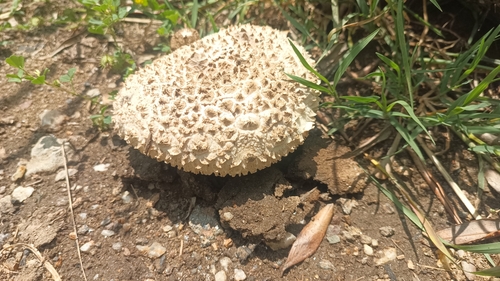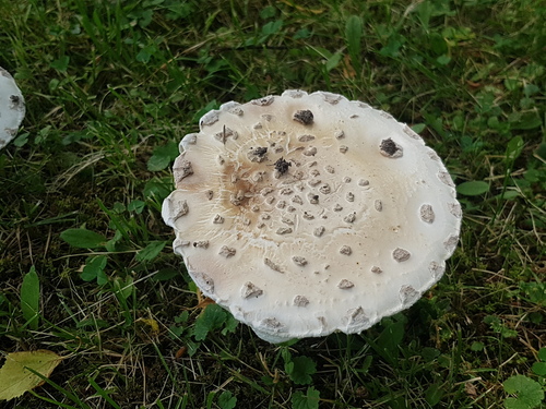 Der 5–22 cm breite Hut ist braun-grau-weiß gefärbt. Die Form ist meist schirmförmig, andere.