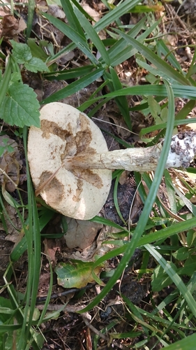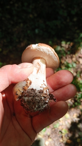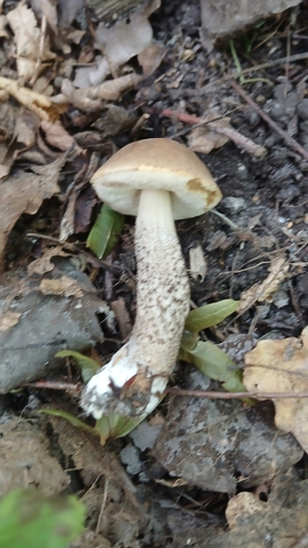 Der Stiel ist braun-weiß-grau. Besondere Merkmale: faserig, Netz, flocken, knollige Basis, Wurzelbasis.
