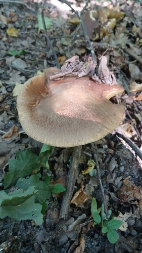 Der 4–25 cm breite Hut ist gelb-braun-rot gefärbt. Die Form ist meist andere.