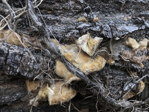 Die Unterseite zeigt Farben von braun/orange/grau/weiß. Sie sind angewachsen, herablaufend.