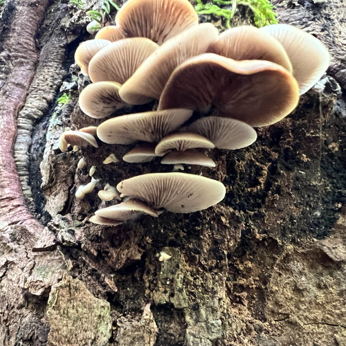 Die Unterseite zeigt Farben von orange/weiß. Sie sind angewachsen.