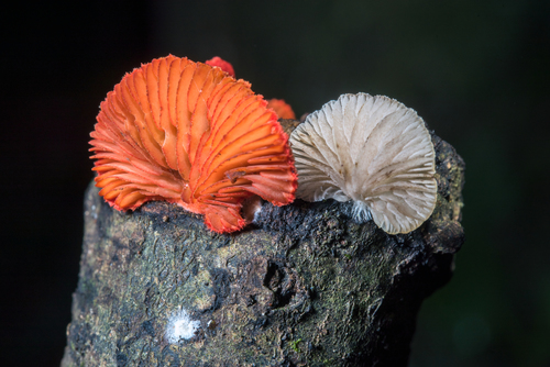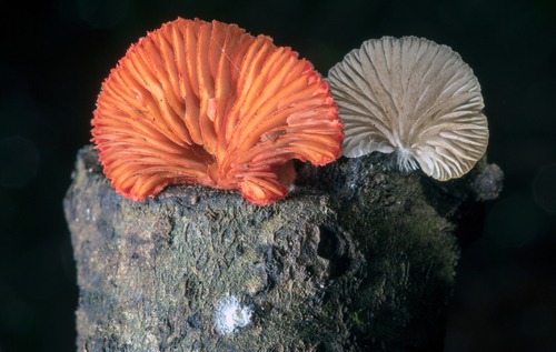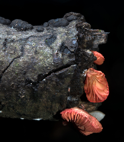 Die Unterseite zeigt Farben von rot/orange. Sie sind angewachsen, herablaufend.