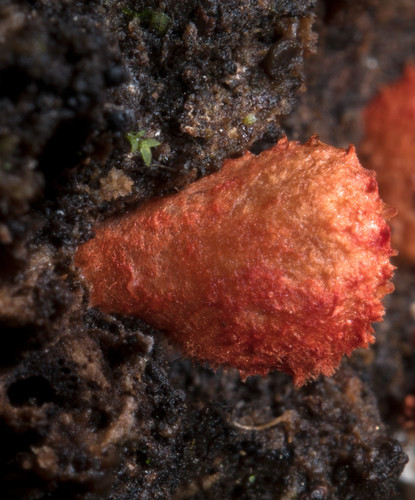 Das Sporenpulver ist rot, braun.