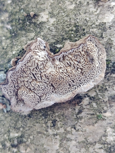 Der Großporige Datronie (Datronia mollis) ist ein Pilz mit dem Speisewert ungenießbar. Die Hauptsaison erstreckt sich von Januar bis Dezember. Er wächst bevorzugt auf Holz.