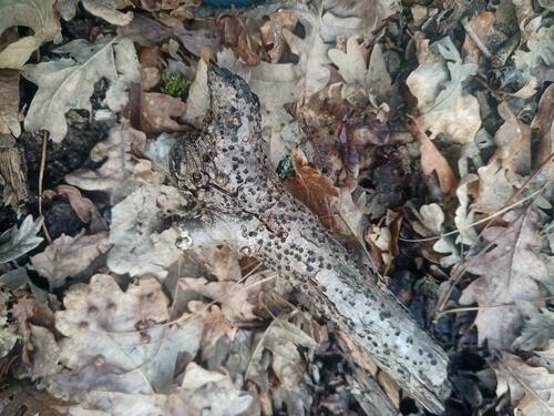 Die Unterseite zeigt Farben von braun/schwarz/rot.
