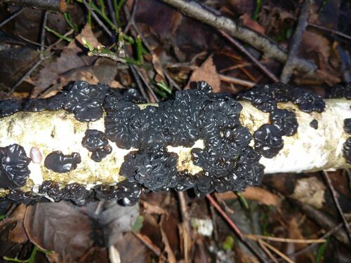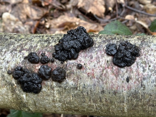 Der Warziger Drüsling (Exidia nigricans) ist ein Pilz mit dem Speisewert ungenießbar. Die Hauptsaison erstreckt sich von Januar bis Dezember. Er wächst bevorzugt auf Holz.
