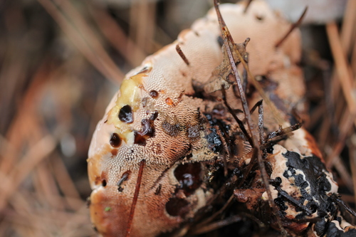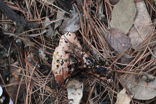 Der Stiel ist weiß-braun-rot-grau. Besondere Merkmale: flocken, Wurzelbasis.