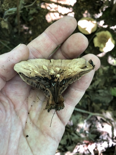 Der hydnellum spongiosipes (Hydnellum spongiosipes) ist ein Pilz mit dem Speisewert ungenießbar. Die Hauptsaison erstreckt sich von Juni bis November. Er wächst bevorzugt auf Boden.