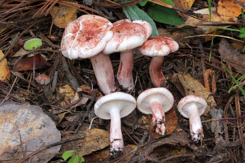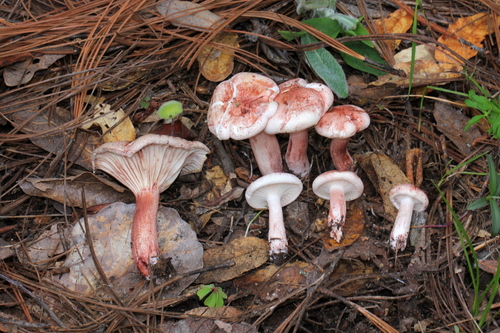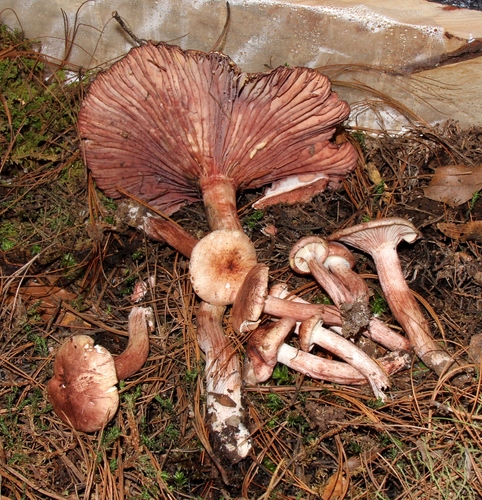 Die Unterseite zeigt Farben von rot/weiß/rosa/gelb. Sie sind angewachsen, herablaufend.