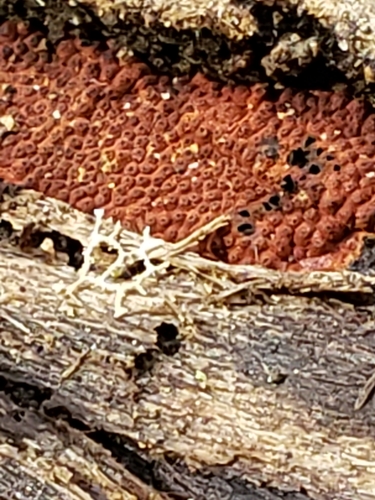 Der Ziegelrote Kohlenkruste (Hypoxylon rubiginosum) ist ein Pilz mit dem Speisewert ungenießbar. Die Hauptsaison erstreckt sich von Januar bis Dezember. Er wächst bevorzugt auf Holz.