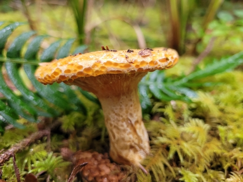 Der Stiel ist gelb-braun-weiß-orange. Besondere Merkmale: brüchig, hohl, genattert.