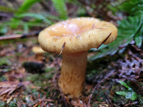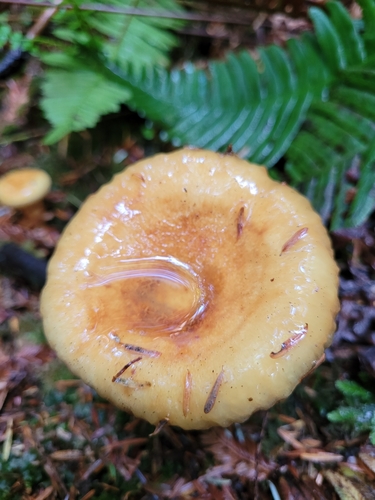 Der 5–25 cm breite Hut ist orange-gelb gefärbt. Die Form ist meist trichterförmig, andere, schirmförmig. Er ist hygrophan (Die Hutfarbe ändert sich bei Feuchtigkeit).