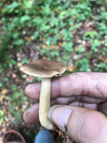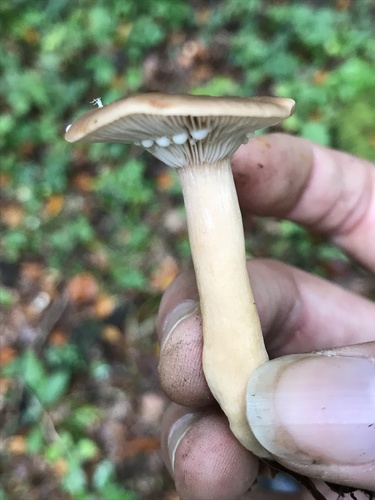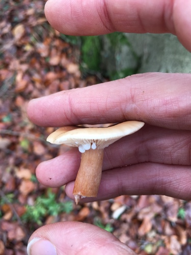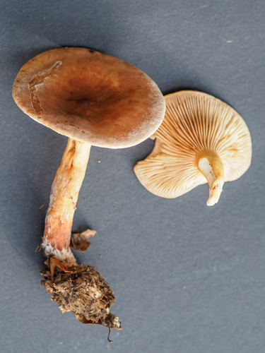 Der Stiel ist braun-orange-gelb. Besondere Merkmale: brüchig, Wurzelbasis.