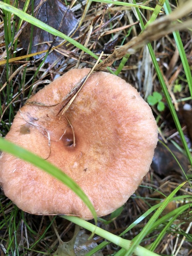 Der 4–14 cm breite Hut ist braun-orange-rot-rosa gefärbt. Die Form ist meist trichterförmig, schirmförmig. Er ist hygrophan (Die Hutfarbe ändert sich bei Feuchtigkeit).