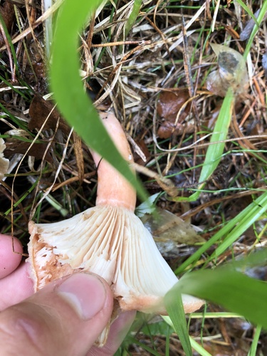 Der Stiel ist braun-orange-rosa-gelb. Besondere Merkmale: brüchig, hohl, flocken.