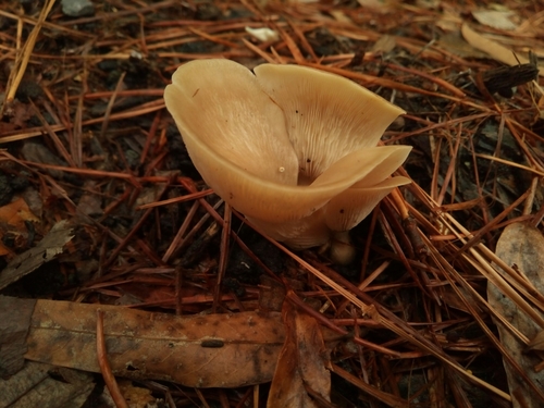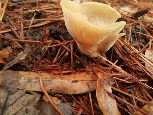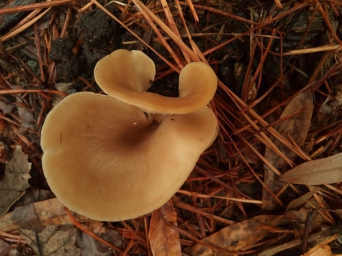 Die Unterseite zeigt Farben von braun/orange/gelb/weiß. Sie sind angewachsen, herablaufend.