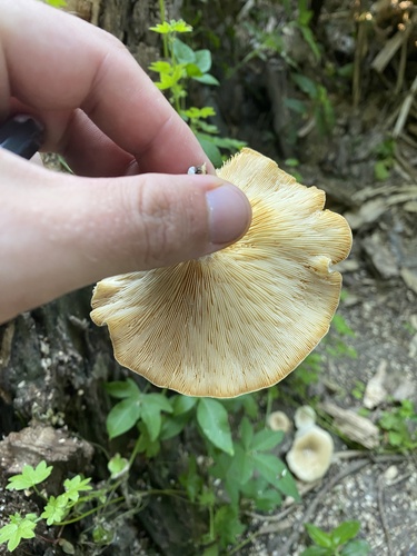 Die Unterseite zeigt Farben von gelb/weiß. Sie sind angewachsen, herablaufend.