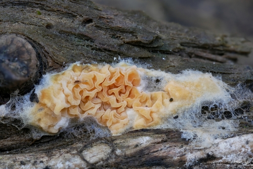Der Weiche Gewebehaut (Leucogyrophana mollusca) ist ein Pilz mit dem Speisewert ungenießbar. Die Hauptsaison erstreckt sich von September bis April. Er wächst bevorzugt auf Holz.