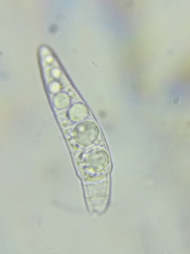 Der 1–1 cm breite Hut ist schwarz gefärbt.