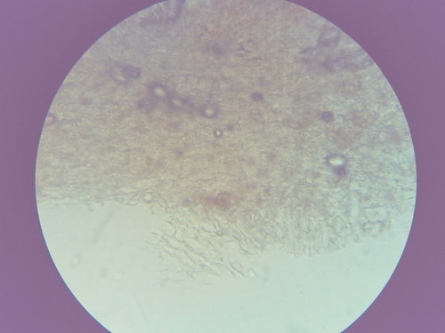 Der Stiel ist braun-gelb. Besondere Merkmale: flocken, faserig, Wurzelbasis, genattert.