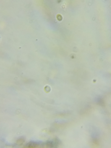 Der 1–6 cm breite Hut ist gelb-braun-weiß gefärbt. Die Form ist meist kegelförmig.