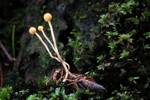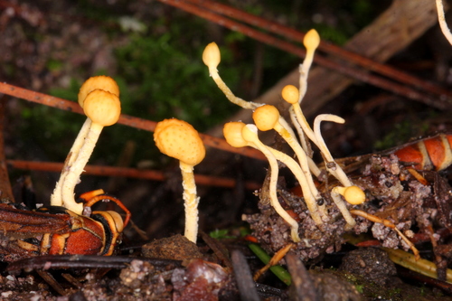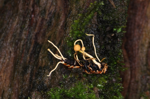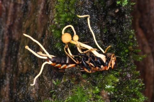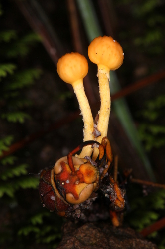 Der ophiocordyceps sphecocephala (Ophiocordyceps sphecocephala) ist ein Pilz mit dem Speisewert ungenießbar. Die Hauptsaison erstreckt sich von Juni bis November. Er wächst bevorzugt auf Holz, Boden, Wiese.