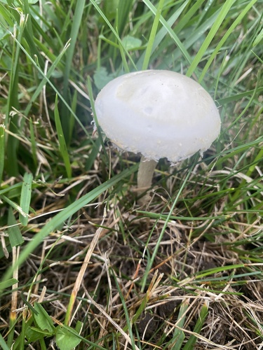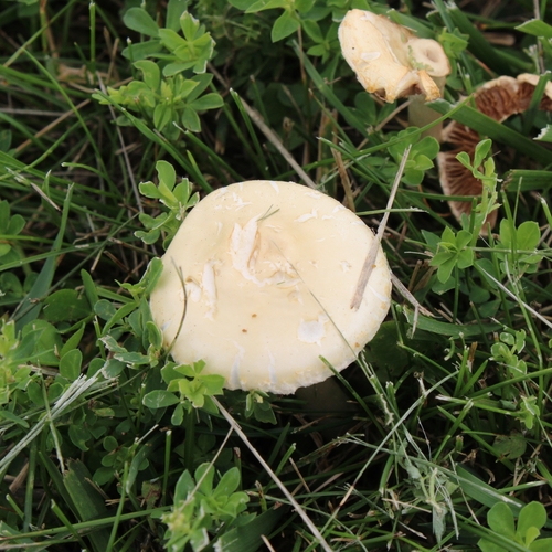 Der 2–9 cm breite Hut ist weiß-gelb gefärbt. Die Form ist meist schirmförmig, andere, kegelförmig, geriefter Hut. Er ist hygrophan (Die Hutfarbe ändert sich bei Feuchtigkeit).