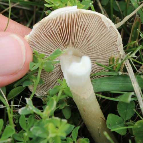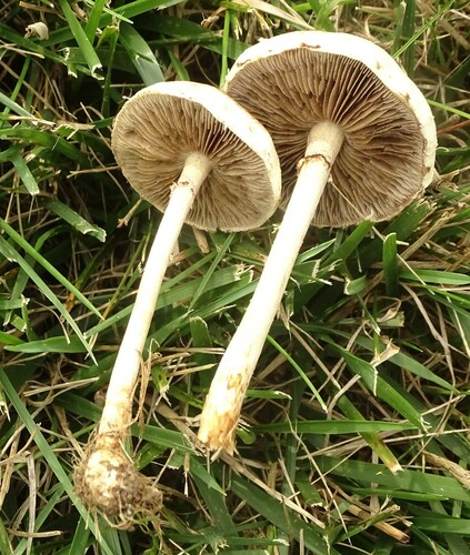 Der Stiel ist weiß-braun. Besondere Merkmale: Ring, flocken, faserig, hohl, Wurzelbasis.
