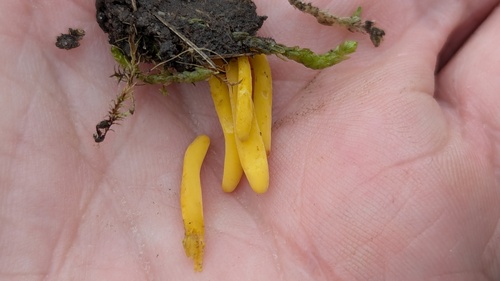 Der Goldgelbe Wiesenkeule (Clavulinopsis helvola) ist ein Pilz mit dem Speisewert ungenießbar. Die Hauptsaison erstreckt sich von Juli bis Oktober. Er wächst bevorzugt auf Wiese, Boden.