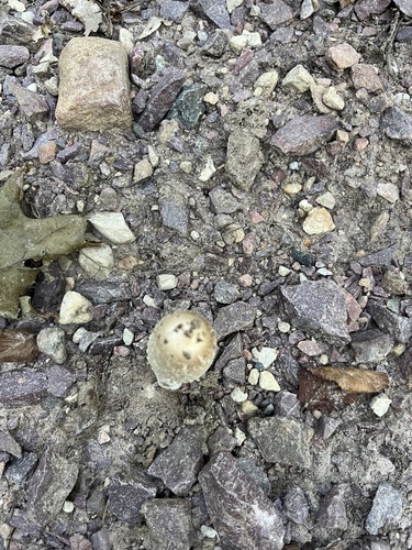 Der 1–8 cm breite Hut ist braun-weiß-gelb gefärbt. Die Form ist meist andere, schirmförmig, geriefter Hut.