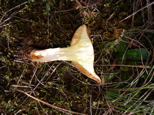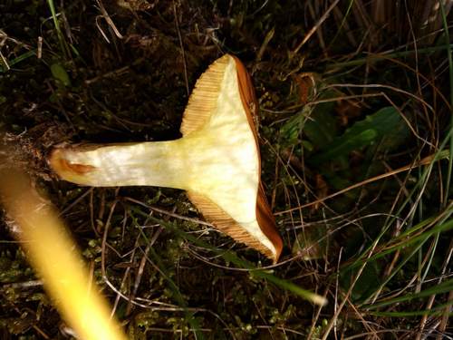 Die Unterseite zeigt Farben von gelb/braun/orange. Sie sind angewachsen, herablaufend.