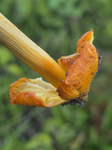 Der Stiel ist orange-gelb-weiß-rot. Besondere Merkmale: faserig, hohl.