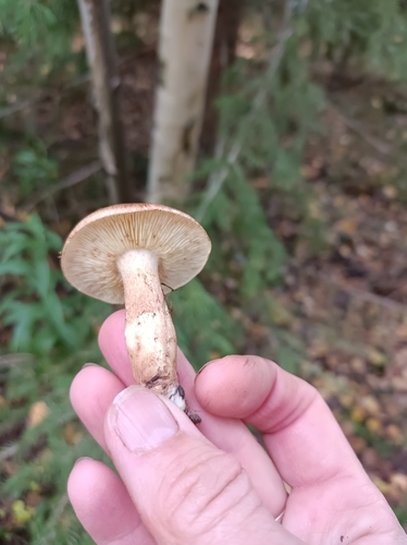 Der Stiel ist braun-gelb-weiß. Besondere Merkmale: faserig, hohl, Wurzelbasis, genattert.