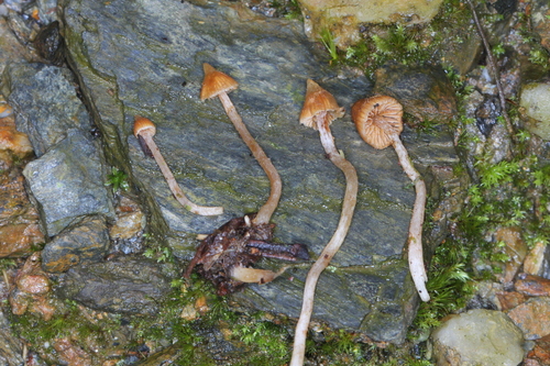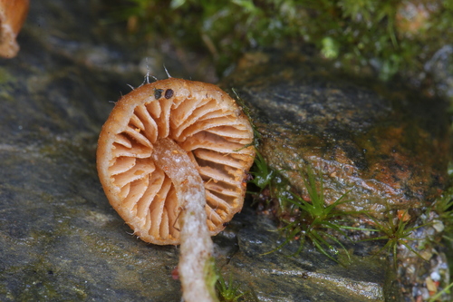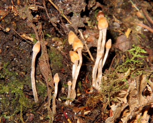 Der 1–3 cm breite Hut ist braun-orange gefärbt. Die Form ist meist kegelförmig, andere, schirmförmig, geriefter Hut. Er ist hygrophan (Die Hutfarbe ändert sich bei Feuchtigkeit).